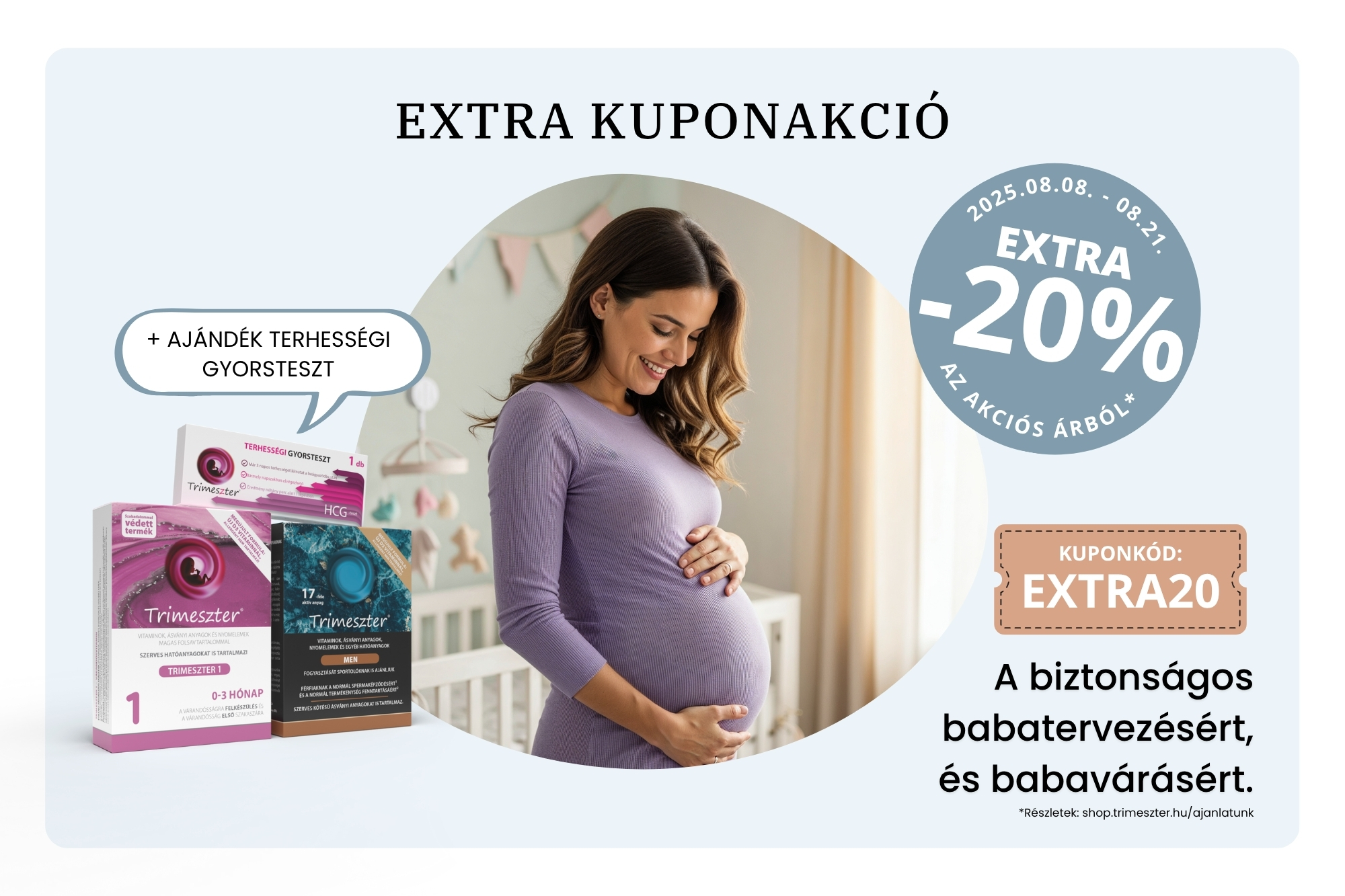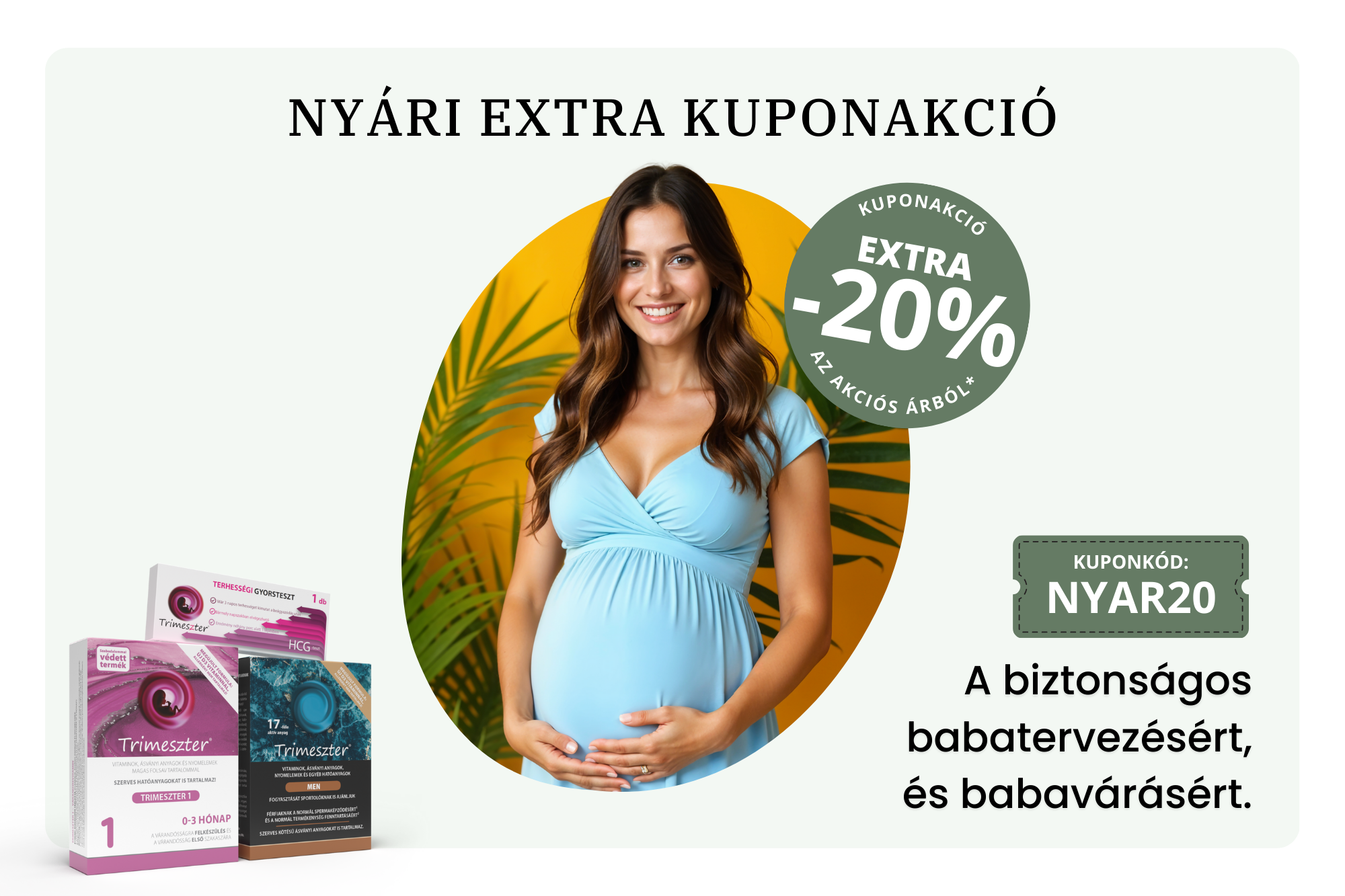 A babát tervezőknek már a felkészülési időszakban, hogy szervezetük és annak tápanyagraktárai a lehető legjobban fel legyen töltve a szervezet építőköveivel – ásványi anyagokkal, nyomelemekkel és a vitaminokkal, valamint azoknak akik már babát várnak vagy szoptatnak. 3 termék, ami lefedi az egész várandósságot.