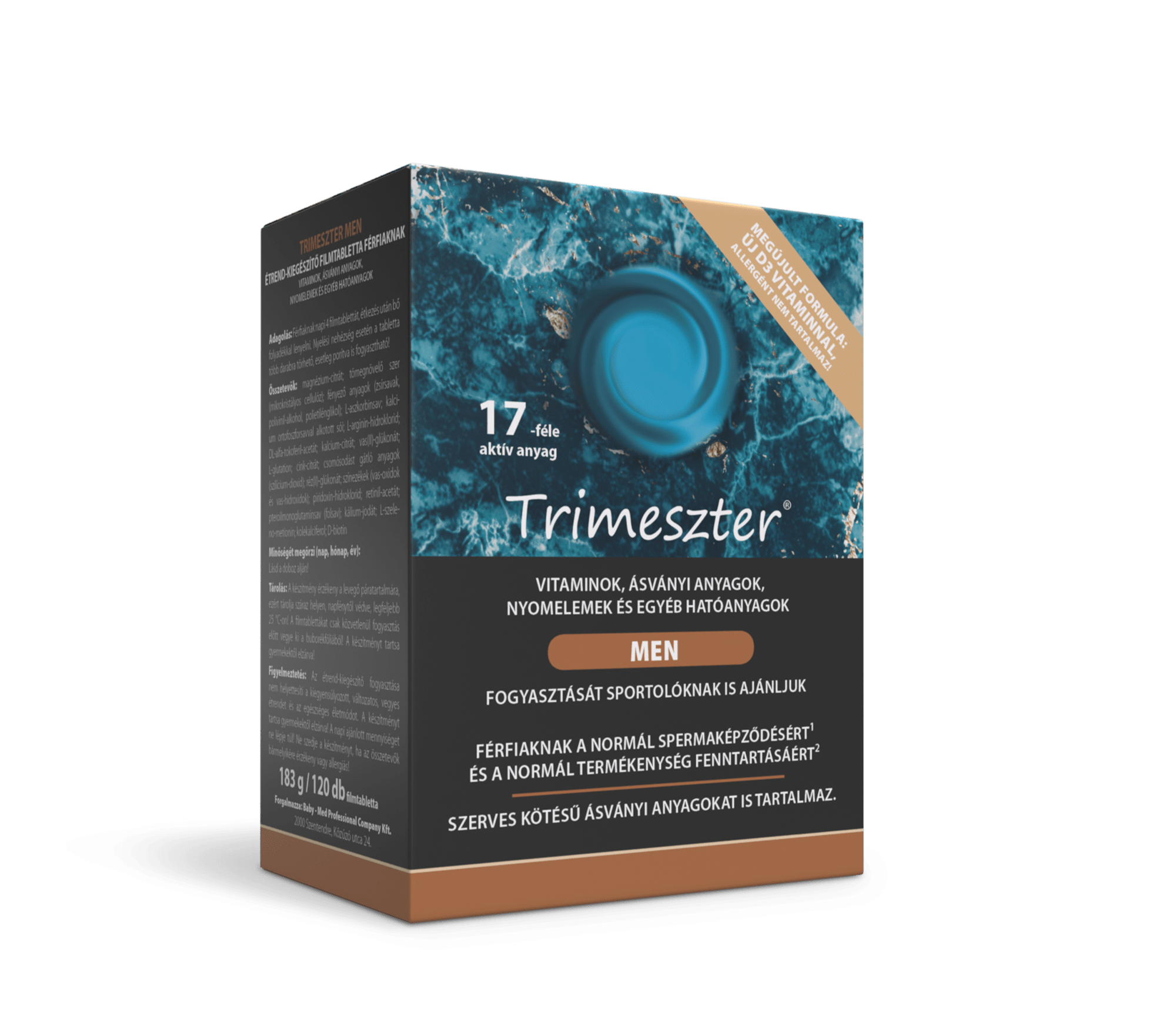 A továbbfejlesztett változatok már magnézium-biszglicinátot, kalcium L-metiltetrahidrofolátot és szerves B12-vitamint tartalmaznak a többi jól bevált, prémium minőségű vitamin, ásványi anyag és nyomelem mellett. Az új fejlesztésű Trimeszter Men is most már magnézium-biszglicinátot és kalcium L-metilterahidrofolátot tartalmaz, ezzel együtt összesen 17-féle aktív anyaggal támogatja célzottan a férfi termékenységet és vitalitást.